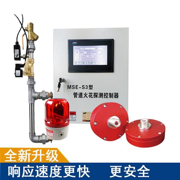 本系統(tǒng)是配套木工機械行業(yè)火花探測報警器使用,除塵系統(tǒng)在運行中管道里產(chǎn)生的火花由探測器檢測到火星增壓裝置啟動加壓噴水將管道里的火苗熄滅,從而保護生產(chǎn)安全